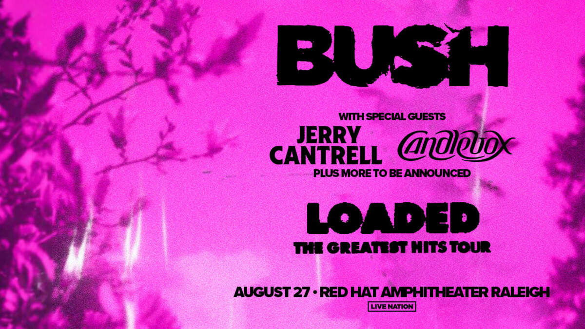 Don't miss Bush! Hitting the road this Summer to celebrate LOADED: The Greatest Hits with special guests Jerry Cantrell and Candlebox at Red Hat Amphitheater Raleigh 8/27!