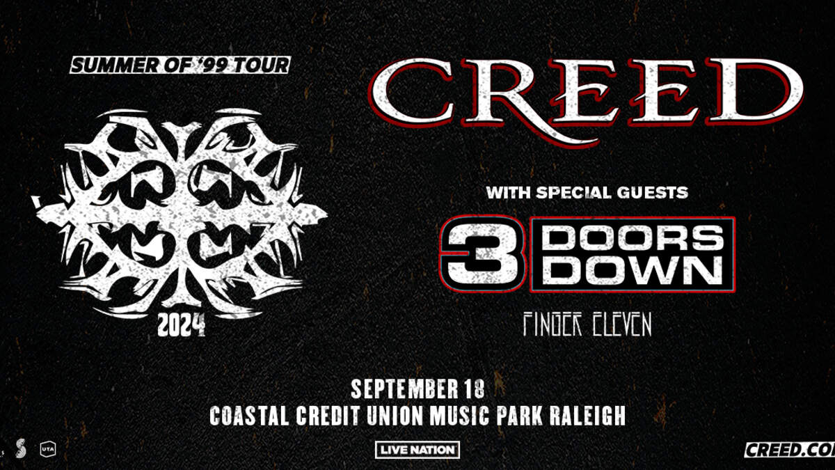Don't miss Creed Summer of '99 Tour! Coming to Raleigh September 18th, 2024 at Coastal Credit Union Music Park!