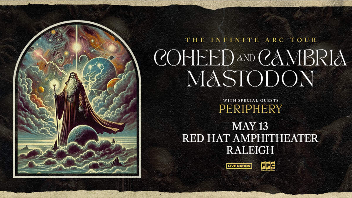Don't miss Coheed and Cambria, Mastodon, and Periphery! Coming to Red Hat Amphitheater Raleigh on 5/13 for an epic night of loudness on The Infinite Arc Tour! 🤘🤘🤘
