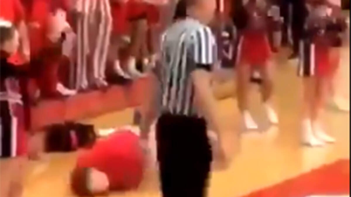 The fan was on the sideline dancing when he dropped to the floor and started shaking as if he was having a seizure, while people in the crowd could be heard chuckling.